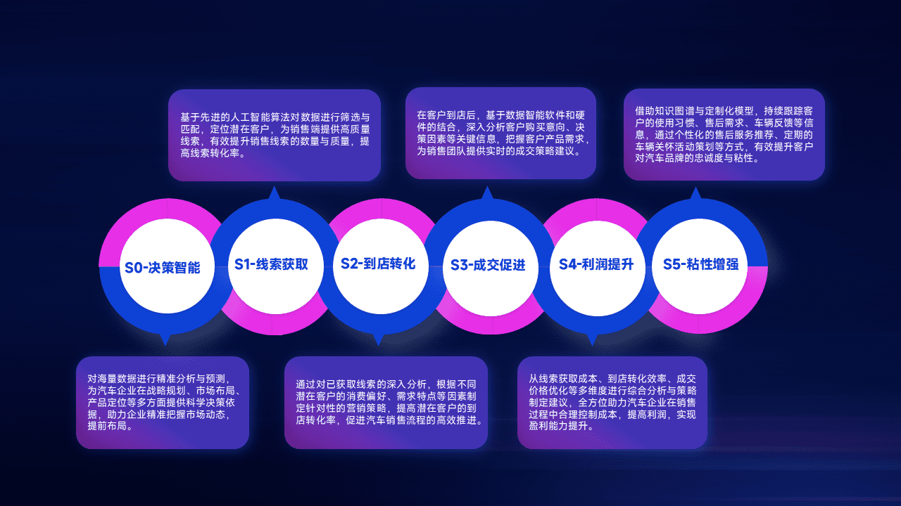 通过拓宽潜在客户来源、、优化线索分配并提高到店转化率,,以增强销售效率。。同时,,,利用线索数据不断优化分析模型,,,,有效提升转化率,,扩大营销影响力。。。。